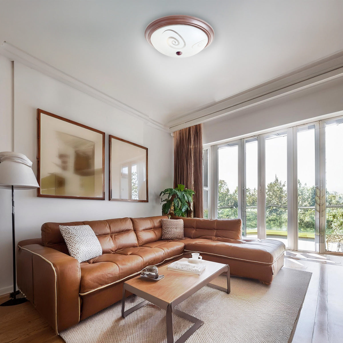 Lámpara de Techo Circular Color Chocolate Pantalla Caracoles